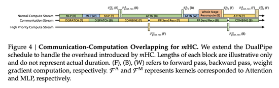 在流水线并行方面,他们扩展了DualPipe调度策略,通过将MLP层的特定内核放在高优先级计算流上执行,实现了计算与通信的重叠。