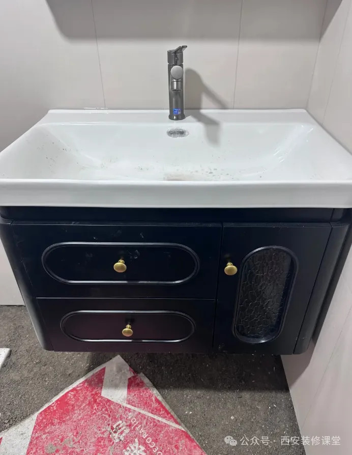 网友@十九妹:工人说地砖没有铺呢,为啥急着装浴柜,他咋干活?也对呀,自己不懂也抽风急着买就让安装了。自装就是忙忙碌碌添乱还贵。